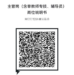 根据《H视频 2023-2026年度“三定”方案》(浙商大党〔2023〕3号)核定的主管岗岗位数,请各学院(部门)制定主管岗(含非教师专技、辅导员)各岗位的说明书,经主要领导审核后于2023年2月22日(周三)上午10点前在钉钉填写完毕并提交(扫描下图二维码),纸质版报送到人事处(综合楼1031室)。