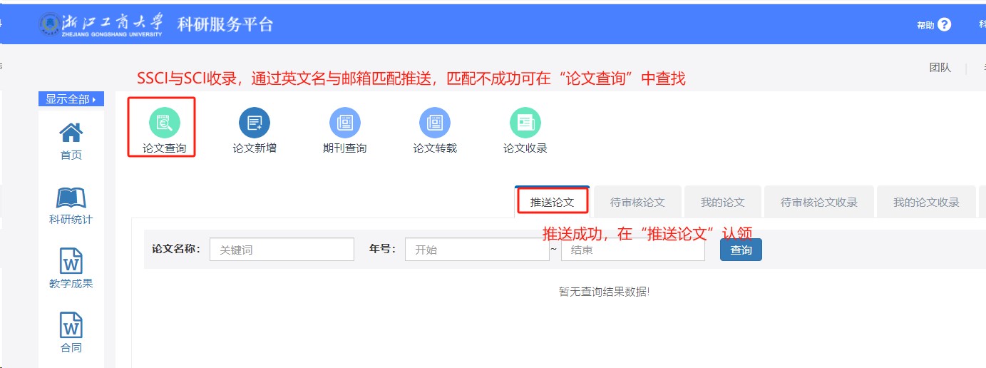 截止2023年10月28日,Web of Science核心集数据库,出版时间为2023年1月1日至2023年10月28日,单位含有Zhejiang Gongshang University,引文索引为SSCI和SCI的论文数据已导入科研服务平台。若论文>推送论文中没有,可以在论文查询中查找,页面截图如下: