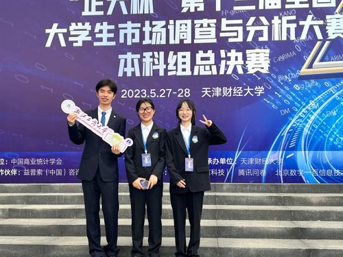 大学生活不应该只是埋头苦学,更应该是一场不断探索的冒险。从转专业成功后,我开始思考如何让自己的大学生活更加充实。于是,我将目光投向了学科竞赛。第一次参赛时,我带领团队参加了市场调查与分析大赛。面对陌生的领域和复杂的任务,我们经历了无数次的失败和返工。但正是这些挫折,让我学会了如何与团队高效协作,如何在压力中保持冷静。最终,我们斩获了国家二等奖。那一刻,我意识到,竞赛不仅是荣誉的象征,更是自我成长的催化剂。此后,我不断挑战自我,从创新类竞赛到创业类竞赛,每一个项目都像是一场未知的冒险。在这些比赛中,我深刻体会到“数据+”思维的强大力量,不断通过实践来窥探自己的潜能,不仅提升了自己的专业技能,还学会了如何与队友沟通、如何管理时间、如何在团队中找到自己的定位。这样的经历在专业中比比皆是——无论是参与各类竞赛,还是不同课堂的课题项目,我们始终在实战中锤炼本领,发挥着“数据人”的独特作用。