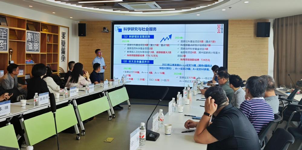 会议伊始,程开明院长以详实的数据、清晰的脉络,全方位、多层次地汇报统计学科的总体概况。从学科的发展历程到当下现状,从长远目标到现存短板,再到切实可行的建设举措,既展现了学科发展的坚实基础,也坦诚直面发展中的挑战。