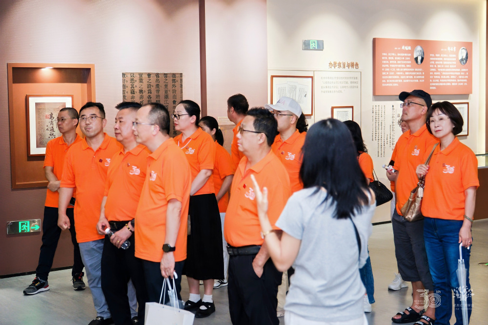 在校史馆,一幅幅老照片、一件件实物展品,串联起学院三十年的发展脉络。当看到“计911班”的毕业合影在展板上陈列时,校友们不约而同围拢过来,指着照片中青涩的彼此,笑声里满是怀恋。“看到学院现在这么强的师资、这么好的学科平台,真为母校骄傲!”一位校友在参观后动情地说。