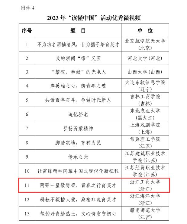 思政全方位赋能,深化学思践悟新成效。构建专业知识与思政实践相结合的主题实践系列,积极引导学生心怀“国之大者”,矢志服务国家,主动担当作为。学生团队撰写的社会实践报告多次获共青团中央表彰;学生创作获省思政微课大赛一等奖,微视频《两弹一星敬脊梁,青春之行育英才》入选教育部关工委2023年“读懂中国”活动优秀微视频(全国60项);微动漫《选择》获评浙江省廉洁教育优秀作品一等奖。学院以孙振锄老先生的先进事迹为经典思政教育资源,不断拓展其在“四史”教育、思政教育、“课程思政”中的使用途径,挖掘商大老一辈党员勇担家国使命、投身强国建设的奋斗历程和感人事迹,不断激发学生奋进力量,点亮强国梦想!