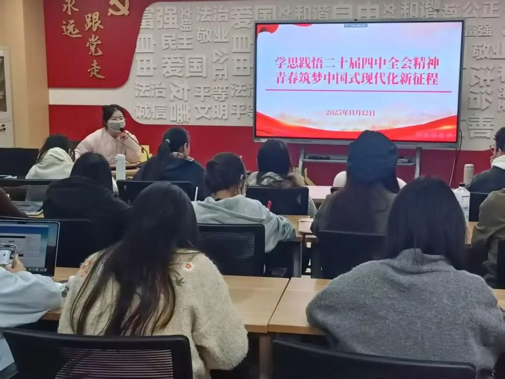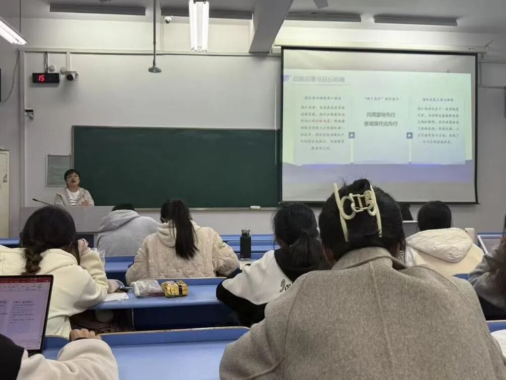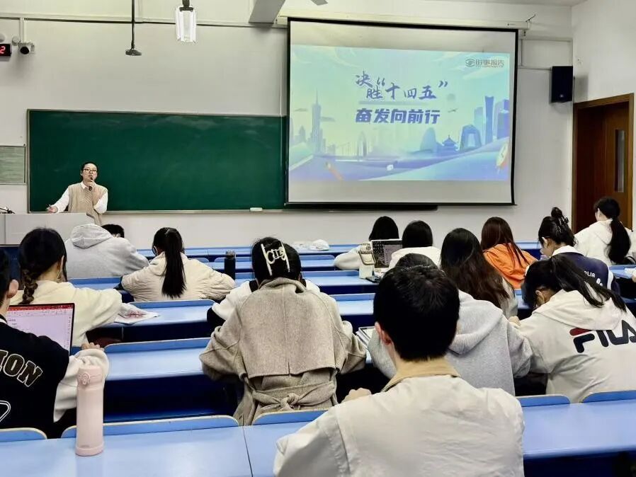 邓京京老师从回望“十四五” 奠基之路、解读 “十五五” 战略转型与部署、学习领会二十届四中全会公报精神、明确青春力量的行动担当与时代使命四个维度展开讲解,引导我们深刻把握国家发展战略,明晰自身在中国式现代化新征程中的使命担当,以专业能力和实际行动践行青春报国之志,为实现“两个一百年” 奋斗目标、推进社会主义现代化强国建设 “两步走” 战略贡献青春力量。