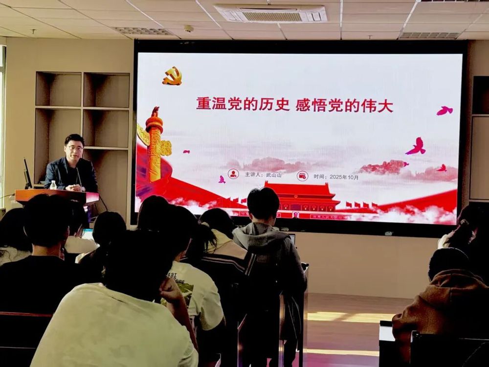 之后,武老师从“没有共产党就没有新中国、没有共产党就没有社会主义中国、党的百年光辉历程给我们的深刻启示”三方面进行讲解。对中共一大代表、党成立之前的时代背景进行详细介绍,将“一五计划”与当下“十五五规划”联系起来分析,深刻揭示党的先进性与我国社会主义制度优越性。让大家对党的光辉历程与先锋队作用有了更深的认识。