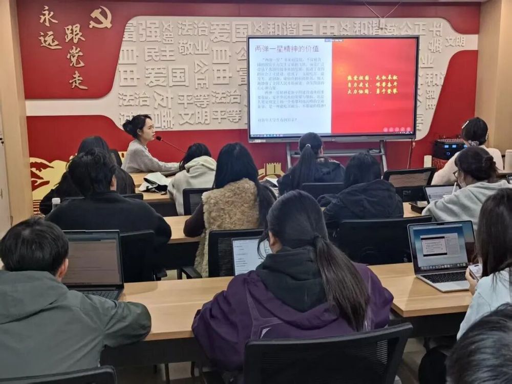 陈亦琪老师以““两弹一星”精神”为主题,为我们介绍了以郭永怀、邓稼先、钱学森为代表的“两弹一星”元勋,向我们展现了他们热爱祖国、无私奉献、艰苦奋斗、勇于攀登的优良品质,并嘱咐我们“传承“两弹一星”精神,青年大学生当以爱国为魂、创新为翼,勇担使命、攻坚破难,在强国征程中书写青春担当与奉献华章”,为发展对象提供了重要的精神指导。